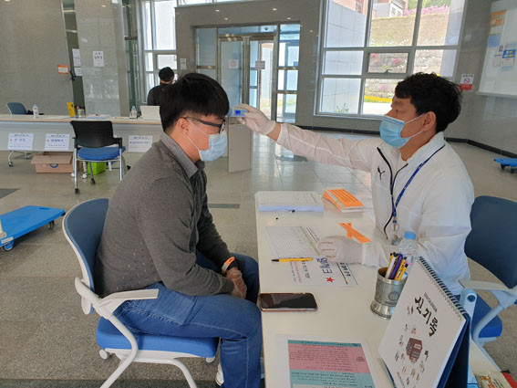 | | ¡è¡è ¡ã4ÀÏ Ãæ³²µµ¸³´ëÇб³ ±³Á÷¿øµéÀÌ ´ë¸é¼ö¾÷À» ¾ÕµÎ°í ºñ»ó¹æ¿ª ±Ù¹«Ã¼Á¦·Î ÀüȯÇÑ °¡¿îµ¥ »ýȰ°üÀ» ¹æ¹®ÇÑ ÇлýÀÇ Ã¼¿ÂÀ» üũÇϰí ÀÖ´Ù. <»çÁøÁ¦°ø=Ãæ³²µµ¸³´ëÇб³> | ¨Ï ¿Â¾ç½Å¹® | | Ãæ³²µµ¸³´ëÇб³(ÃÑÀå ÇãÀ翵)°¡ ´ë¸é ¼ö¾÷ °³°¿¡ µû¶ó Àü±³Á÷¿ø ¹æ¿ªÃ¼Á¦·Î ÀüȯÇϰí Äڷγª È®»ê ¹æÁö¿¡ ³ª¼±´Ù.