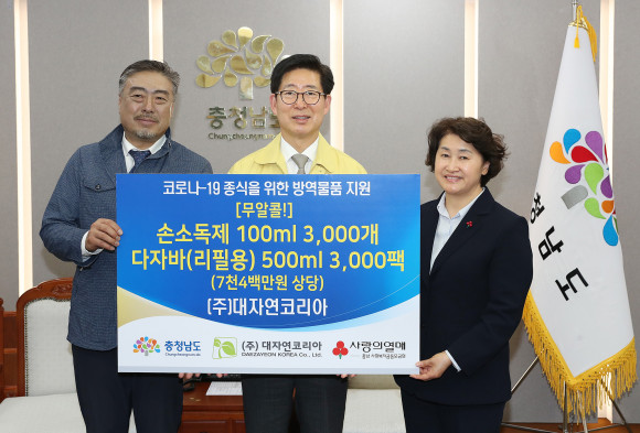 Ãæ³²µµ´Â 5¿ù 6ÀÏ µµÃ» Á¢°ß½Ç¿¡¼ Äڷγª19 ¿¹¹æ ¹× Ä¡·á¸¦ À§ÇÑ ¹°Ç° Àü´Þ½ÄÀ» ¿°í, ´ëÀÚ¿¬ÄÚ¸®¾Æ·ÎºÎÅÍ ¼Õ¼Òµ¶Á¦¸¦ Àü´Þ ¹Þ¾Ò´Ù.