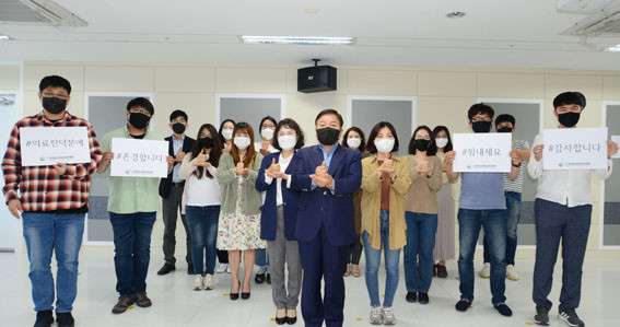 | | ¡è¡è <»çÁøÁ¦°ø=ÃæÃ»³²µµÆò»ý±³À°ÁøÈï¿ø> | ¨Ï ¿Â¾ç½Å¹® | | ÃæÃ»³²µµÆò»ý±³À°ÁøÈï¿ø Á¶ÀÌÇö ¿øÀå ÀÌÇÏ ÀüÁ÷¿øÀÌ 5¿ù 13ÀÏ Äڷγª19 ±Øº¹À» À§ÇØ Çå½ÅÇÏ´Â ÀÇ·áÁø¿¡°Ô °¨»ç¿Í ÀÀ¿øÀÇ ¸Þ½ÃÁö¸¦ Àü´ÞÇϱâ À§ÇØ ¡¯´öºÐ¿¡ 縰Áö¡¯ Ä·ÆäÀο¡ µ¿ÂüÇß´Ù.