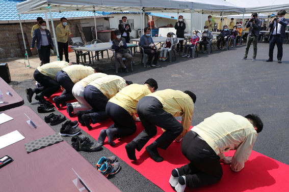 ÀÌÈÄ ¿ùµµ¿¡¼´Â ÁֹΠ°£´ãȸ¿¡ ¾Õ¼ ¿Ëº®º¸° °ø»ç ÇöÀåÀ» ¹æ¹®ÇØ ÃßÁø »óȲ º¸°í¸¦ ¹Þ°í, °ü°èÀÚµéÀ» °Ý·ÁÇß´Ù.