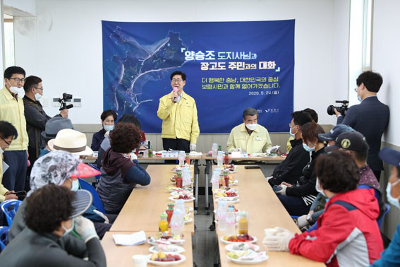 Àå°íµµ¸¦ ¹æ¹®ÇÑ ÀÚ¸®¿¡¼ ¾ç Áö»ç´Â Á¢¾È½Ã¼³, ¾î¹Î º¹Áö½°ÅÍ, µî´ë ¼³Ä¡ µî 137¾ï ¿ø ±Ô¸ðÀÇ ¾îÃÌ´ºµô300 »ç¾÷ ÇöȲÀ» µè°í, Áֹεé°ú ´ëȸ¦ ³ª´³´Ù.