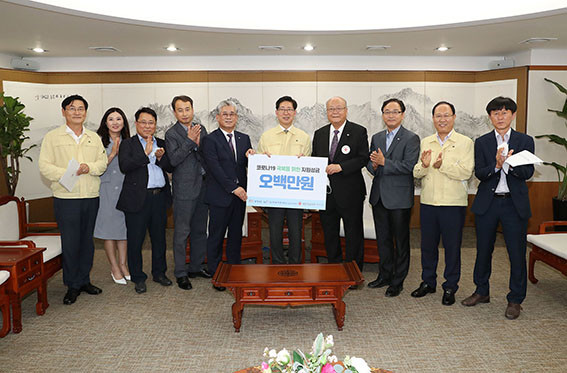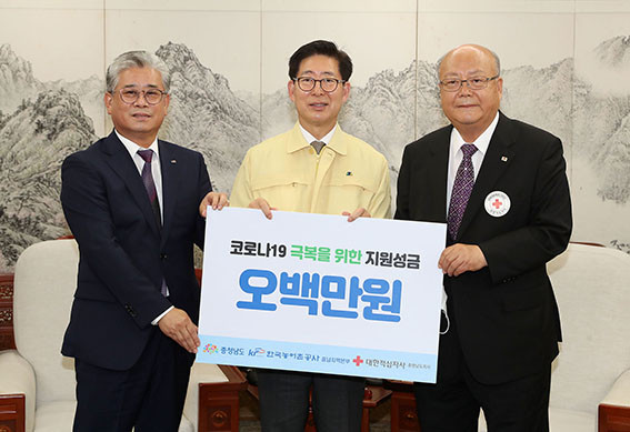 | | ¡è¡è <»çÁøÁ¦°ø=Ãæ³²µµ> | ¨Ï ¿Â¾ç½Å¹® | | Ãæ³²µµ´Â 6¿ù 8ÀÏ Çѱ¹³ó¾îÃ̰ø»ç Ãæ³²Áö¿ªº»ºÎ(º»ºÎÀå ¾ÈÁß½Ä)·ÎºÎÅÍ Äڷγª19 ±Øº¹À» À§ÇÑ ¼º±Ý 500¸¸ ¿øÀ» ±âŹ¹Þ¾Ò´Ù.
