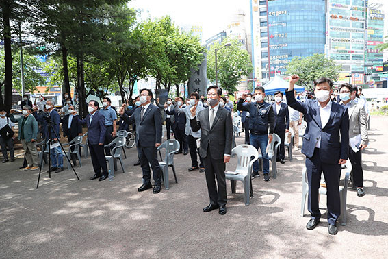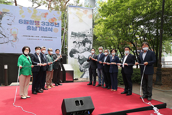À̹ø Çà»ç´Â µµ Â÷¿øÀÇ °ø½Ä ±â³ä½ÄÀ¸·Î´Â óÀ½ ¿©´Â 6¿ù ¹ÎÁÖÇ×Àï °ü·Ã Çà»ç·Î, ¡®¸ðµÎ¸¦ ÁöŰ´Â ¾à¼Ó, ¹ÎÁÖÁÖÀÇ¡¯¶ó´Â ±¸È£ ¾Æ·¡ 6¿ù ¹ÎÁÖÇ×Àï Á¤½ÅÀ» °è½Â¡¤¹ßÀü½Ã۱â À§ÇØ ¸¶·ÃÇß´Ù.