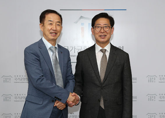 ¾ç Áö»ç´Â À̳¯ Á¤ºÎ ¼¿ïû»ç¿¡ À§Ä¡ÇÑ ±ÕÇüÀ§¸¦ ¹æ¹®, ±è»ç¿ À§¿øÀåÀ» ¸¸³µ´Ù. ÀÌ ÀÚ¸®¿¡¼ ¾ç Áö»ç´Â ¡°±ÕƯ¹ý °³Á¤Àº Ãæ³²°ú ´ëÀüÀÌ Çõ½Åµµ½Ã¿Í °ü·ÃÇÑ ±ÕµîÇÑ ±âȸ¸¦ ¾òÀº °ÍÀÌÀÚ, ¹®ÀçÀÎ Á¤ºÎÀÇ ¡®³»Æ÷½Åµµ½Ã È¯È²ÇØ±Ç Á߽ɵµ½Ã À°¼º¡¯ °ø¾à ½Çõ ¹ßÆÇÀ» ¸¶·ÃÇÑ °Í¡±À̶ó°í ¸»Çß´Ù.