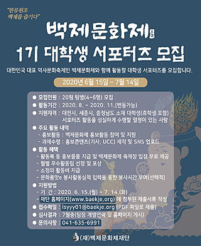 ´ëÇлý ¼Æ÷ÅÍÁîµéÀº ¹éÁ¦¹®ÈÁ¦ÀÇ ÁÖü°¡ µÇ¾î È«º¸ÄÜÅÙÃ÷ Á¦ÀÛ(±â»ç, UCC) ¹× SNS ¾÷·Îµå, È«º¸ ÇÁ·Î±×·¥ Âü¿©(±âȹ¡¤Áö¿ø) µî ¹éÁ¦¹®ÈÁ¦¿¡ Ȱ·ÂÀ» ºÒ¾î³Ö´Â ´Ù¾çÇÑ È«º¸È°µ¿¿¡ µ¿ÂüÇÏ°Ô µÈ´Ù. Ȱµ¿±â°£Àº 8¿ùºÎÅÍ 11¿ù±îÁö´Ù.