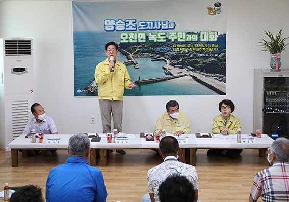 ¾ç Áö»ç´Â ³ìµµ ÁֹεéÀÇ »ýȰ¿©°ÇÀ» °³¼±Çϱâ À§ÇÑ È¯°æ Á¤ºñ »ç¾÷ ÃßÁø ÇöȲÀ» µè°í, Áֹεé°ú ÁúÀÇÀÀ´äÀ» ÁÖ°í¹Þ´Â µî ¼ÒÅëÇß´Ù.