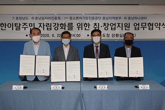 ±è¿ëÂù ÇàÁ¤ºÎÁö»ç¿Í À̽ÿì Ãæ³²ÀÏÀÚ¸®ÁøÈï¿ø ¿øÀå, Áß¼Òº¥Ã³±â¾÷ÁøÈï°ø´Ü À¯±ÇÈ£Áö¿ªº»ºÎÀå, Ãæ³²Çϳª¼¾ÅÍ ÀÌÀ±±â ¼¾ÅÍÀåÀÌ Âü¼®ÇÑ °¡¿îµ¥ ¿¬ À̹ø Çù¾à½Ä¿¡¼´Â ºÏÇÑÀÌÅ»ÁÖ¹ÎÀÇ Ãë¾÷ ºÒÆí»çÇ×À» ÇØ¼Ò¡¤Áö¿øÇϱâ À§ÇÑ Çù·ÂÀ» ´ÙÁüÇß´Ù.