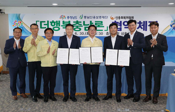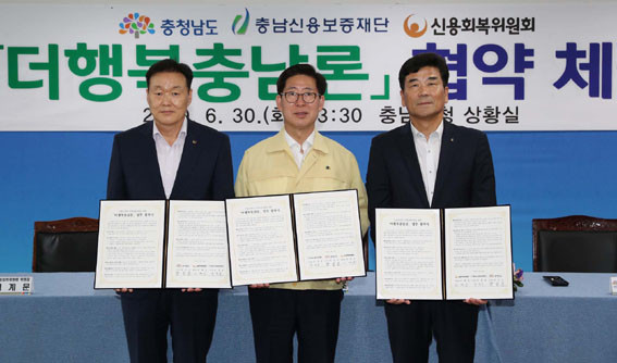 ¾ç½ÂÁ¶ Ãæ³²Áö»ç´Â 6¿ù 30ÀÏ µµÃ»¿¡¼ À¯¼ºÁØ Ãæ³²½Å¿ëº¸ÁõÀç´Ü ÀÌ»çÀå, À̰蹮 ½Å¿ëȸº¹À§¿øÈ¸ À§¿øÀå°ú ¡®´õÇàº¹Ãæ³²·Ð¡¯ ½ÃÇàÀ» À§ÇÑ ¾÷¹«Çù¾à(MOU)À» ü°áÇß´Ù.
