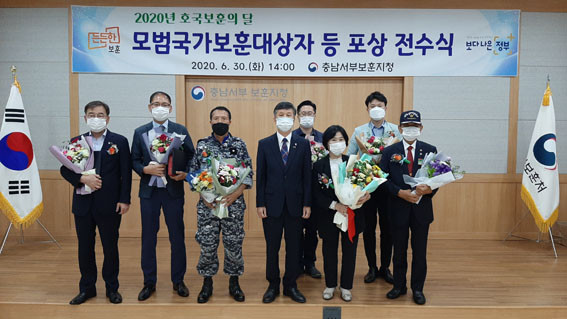 ±¹°¡º¸ÈÆÃ³Àå ǥâ ´ë»óÀÚ´Â ¡ã¸ð¹ü±¹°¡º¸ÈÆ´ë»óÀÚ ±è¼øÈñ(Àü¸ô±º°æ¹Ì¸ÁÀÎȸ¼Ãµ±ºÁöȸ)¾¾, ¹Ú¼ºÁ¶(¹«°ø¼öÈÆÀÚȸ¼»ê½ÃÁöȸ)¾¾, Á¶º´È¯(Ư¼öÀÓ¹«À¯°øÀÚȸ¿¹»ê±ºÁöȸ)¾¾ ¡ã´ë¿ÜÀ¯°øÀÎ»ç ¼±¾çºÎ¹® ¹ÚÀ翵(û¾ç±ºÃ»)¾¾ ¡ã ´ë¿ÜÀ¯°øÀλç Ãë¾÷ºÎ¹® ¹æÈ¶û(ÃæÃ»³²µµÃ»)¾¾ ¡ã¸ð¹üÃë¾÷ÀÚ È«¼®¹Î(È«¼º±ºÃ»)¾¾¿¡°Ô ÁÖ¾îÁ³À¸¸ç, ±³À°ºÎÀå°ü ǥâÀº ¡ã¸ð¹üÃë¾÷ÀÚ ±èÁ¾±¹(»ð±³ÁßÇб³)¾¾¿¡°Ô Àü¼öµÅ ÃÑ 7¸í¿¡°Ô ǥâÀåÀ» ¼ö¿©Çß´Ù.