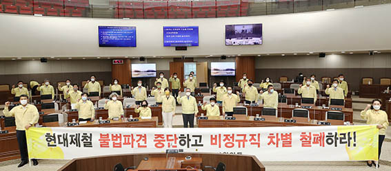 °áÀǾÈÀº Çö´ëÁ¦Ã¶ ´çÁø°øÀå¿¡ ±¹°¡ÀαÇÀ§¿øÈ¸ÀÇ ºñÁ¤±ÔÁ÷ Â÷º° ÇØ¼Ò ±Ç°í ¼ö¿ë, ºñÁ¤±ÔÁ÷ ³ëµ¿ÀÚ Á÷Á¢ °í¿ëÀ» À§ÇÑ ´Üü±³¼· Âü¿©¸¦ Ã˱¸Çϱâ À§ÇØ Ã¤ÅÃÇß´Ù.