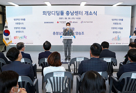 µµ´Â 6¿ù 30ÀÏ ¾Æ»ê½Ã ¹è¹æÀ¾ ÄھƷçÀ£¸ÞÀ̵å½ÃƼ¿¡¼ ¡®Èñ¸Áµðµõµ¹ Ãæ³²¼¾ÅÍ¡¯(º¸È£¾Æµ¿ÀÚ¸³ÅëÇÕÁö¿ø¼¾ÅÍ) °³¼Ò½ÄÀ» °³ÃÖÇß´Ù.