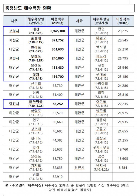 | | ¡è¡è <»çÁøÁ¦°ø=Ãæ³²µµ> | ¨Ï ¿Â¾ç½Å¹® | | ¼ÇØ¾È ÃÖ´ë ÇØ¼ö¿åÀåÀÎ ´ëÃµÇØ¼ö¿åÀåÀ» ºñ·ÔÇÑ Ãæ³²µµ ³» 33°³ ÁöÁ¤ ÇØ¼ö¿åÀåÀÌ ¿À´Â 7¿ù 3ÀϺÎÅÍ º»°Ý °³ÀåÇÑ´Ù.