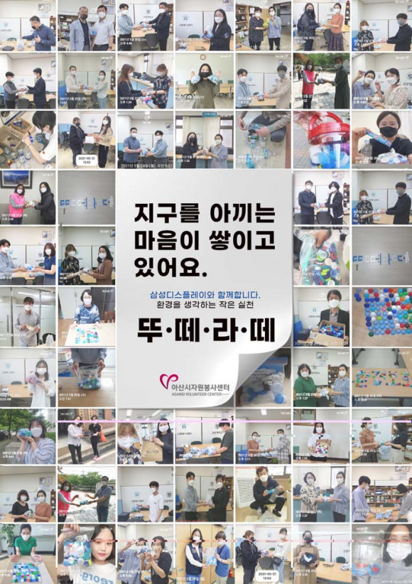 ¾Æ»ê½ÃÀÚ¿øºÀ»ç¼¾ÅÍ¿Í »ï¼ºµð½ºÇ÷¹ÀÌ´Â º» Ȱµ¿À» ÅëÇØ ¸ð¾ÆÁø ÃÑ 3¸¸ 4õ550°³ÀÇ ÆóÇÃ¶ó½ºÆ½ ¶Ñ²±À» ¿¤½ºÅØ »çȸÀû±â¾÷¿¡ Àü´ÞÇß´Ù.