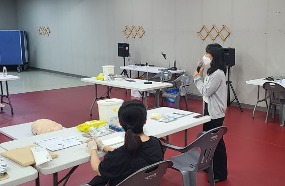 À̳¯ ±³À°Àº ¹é½Å º¸°ü ¹× °ü¸®, ÈÀÌÀÚ ¹é½Å Åõ¾à Áغñ°úÁ¤ ½Ã¿¬ ¹× ½Ç½À, Á¢Á¾ ¼ú±â, ¾Æ³ªÇʶô½Ã½º ´ëó ¹æ¹ý, ÀÌ»ó ¹ÝÀÀ Áø´Ü ½Ã ÀÇ·á±â°ü ½Å°í ¹æ¹ý µî¿¡ ´ëÇØ ÁøÇàµÆÀ¸¸ç, ¿ÀÁ¢Á¾ ¹æÁö¸¦ À§ÇÑ ¹é½Åº° °íÀ¯»ö ½ºÆ¼Ä¿µµ Á¦ÀÛ ¹èÆ÷Çß´Ù.
