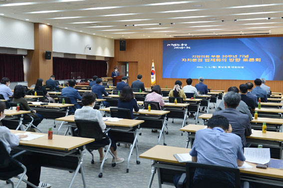 Ãæ³²µµÀÇȸ(ÀÇÀå ±è¸í¼±)´Â 7¿ù 5ÀÏ Ãæ³²µµÃ» ´ëȸÀǽǿ¡¼ ¡®ÀÚÄ¡ºÐ±Ç ¹ýÁ¦ÈÀÇ ¹æÇ⡯À» ÁÖÁ¦·Î Á¤Ã¥Åä·Ðȸ¸¦ °³ÃÖÇß´Ù.
