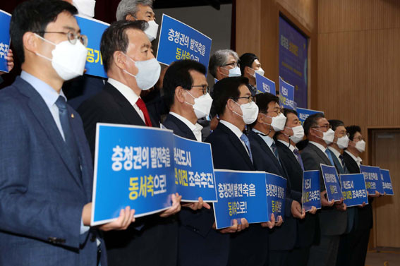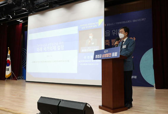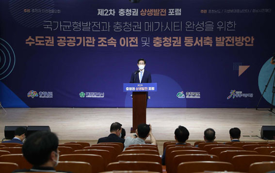ÃæÃ»±Ç ¹Î°üÁ¤ÇùÀÇȸ°¡ ¡®±¹°¡±ÕÇü¹ßÀü°ú ÃæÃ»±Ç ¸Þ°¡½ÃƼ ¿Ï¼ºÀ» À§ÇÑ ¼öµµ±Ç °ø°ø±â°ü Á¶¼Ó ÀÌÀü ¹× ÃæÃ»±Ç µ¿¼Ãà ¹ßÀü ¹æ¾È¡¯À» ÁÖÁ¦·Î ¿¬ À̳¯ »ó»ý¹ßÀü Æ÷·³¿¡´Â ¾ç Áö»ç¸¦ ºñ·ÔÇÑ ÃæÃ»±Ç ½ÃµµÁö»ç¿Í ±è¸í¼± µµÀÇȸ ÀÇÀå, È«¹®Ç¥ ÀÇ¿ø µî 30¿© ¸íÀÌ Âü¼®Çß´Ù.