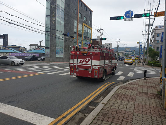 °ðÀÌ¾î ¼Ò¹æÂ÷ ÁøÇà ¹æÇâ ½ÅÈ£µîÀÌ ºÓÀº»ö¿¡¼ ³ì»öÀ¸·Î ¹Ù²î¾ú°í ¼Ò¹æÂ÷´Â Á¤Â÷ ¾øÀÌ ±³Â÷·Î¸¦ Åë°úÇß´Ù. ¿¬ÀÌÀº ±³Â÷·Î¿¡¼µµ ¼Ò¹æÂ÷ÀÇ Ã⵿¿¡´Â °ÅħÀÌ ¾ø¾ú´Ù.