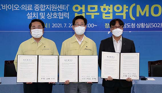 ¾ç½ÂÁ¶ Áö»ç´Â 7¿ù 22ÀÏ µµÃ» »óȲ½Ç¿¡¼ ±è¼¼Á¾ Çѱ¹»ê¾÷±â¼ú½ÃÇè¿ø(KTL) ¿øÀå, ¿À¼¼Çö ¾Æ»ê½ÃÀå°ú ¡®¹Ì·¡ »ê¾÷ À°¼º ¹× ¹ÙÀÌ¿À¡¤ÀÇ·á Á¾ÇÕÁö¿ø¼¾ÅÍ ¼³Ä¡ Çù·Â ¾÷¹«Çù¾à(MOU)¡¯À» ü°áÇß´Ù.
