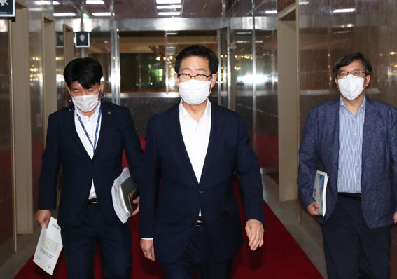 ¾ç Áö»ç´Â 7¿ù 28ÀÏ ±¹È¸¿¡¼ ¹Úº´¼® ±¹È¸ÀÇÀå°ú À±È£Áß ¹ÎÁÖ´ç ¿ø³»´ëÇ¥¸¦, û¿Í´ë¿¡¼ À¯¿µ¹Î ºñ¼½ÇÀå µîÀ» ÀÕµû¶ó ¸¸³µ´Ù.