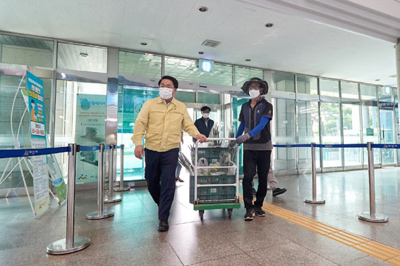 ÀÌ¿¡ »ý»ê ³ó°¡ÀÇ ¾Ö·Î»çÇ×À» Á¢ÇÑ ¾Æ»ê½Ã °ø¹«¿øµéÀÌ ³ó°¡ÀÇ ÇÇÇØ¸¦ ÃÖ¼ÒÈÇϰíÀÚ Çб³ ±Þ½Ä¿ë ģȯ°æ ³ó»ê¹°·Î ±¸¼ºµÈ ¡®³ó»ê¹° ²Ù·¯¹Ì(³ó»ê¹° 6Á¾)¡¯¿Í ¹æ¿ïÅ丶Åä, ¾ó°¥ÀÌ, ¿¹« µî ³ó»ê¹° ±¸¸Å¿¡ Àû±ØÀûÀ¸·Î ³ª¼¹´Ù.