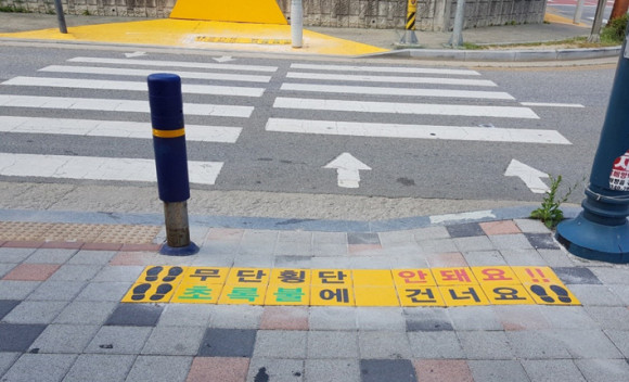 ³ë¶õ¹ßÀÚ±¹Àº Ⱦ´Üº¸µµ ¾Õ¿¡ °æ°í¹®±¸°¡ »õ°ÜÁø ³ë¶õ»ö º¸µµºí·°À» ¼³Ä¡ÇØ ¾î¸°À̵éÀÇ ÁÖÀǸ¦ ²ø°í °©Àڱ⠵µ·Î·Î ¶Ù¾îµå´Â °ÍÀ» ¹æÁöÇÏ´Â È¿°ú¸¦ °¡Áö°í ÀÖ´Ù.