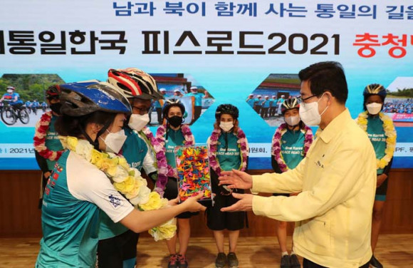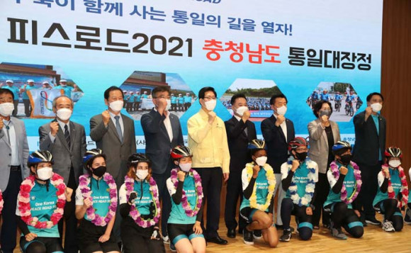 Çѹݵµ ÅëÀϰú ¼¼°èÆòȸ¦ ¿°¿øÇÏ´Â ¡®One Korea Çǽº·Îµå 2021 ÃæÃ»³²µµ ÅëÀÏ´ëÀåÁ¤¡¯ Çà»ç°¡ 4ÀÏ µµÃ» ÀÏ¿ø¿¡¼ ¿·È´Ù.