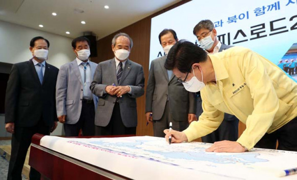 ÀÌ¾î ¡°Äڷγª19 Àå±âÈ·Î ³²°ú ºÏ ¸ðµÎ ¾î·Á¿î »óȲ¿¡¼ Ãæ³²Àº ´Ü±âÀûÀ¸·Î µµ¿òÀ» Áָ鼵µ ÁßÀå±âÀûÀ¸·Î »óÈ£ ÀÌÀÍÀ» °øÀ¯ÇÏ´Â ¼±ÁøÀûÀÎ ´ëºÏ±³·ù¸ðµ¨À» ¸¸µé °Í¡±À̶ó¸ç ¡°À̹ø ÅëÀÏ´ëÀåÁ¤ÀÌ ³²‧ºÏÇÑ¿¡ ¸ðó·³ ã¾Æ¿Â ÈÆÇ³À» Çѹݵµ Àü¿ª¿¡ ³Î¸® ÆÛÆ®¸®´Â ¿ªÇÒÀ» ÇÒ °ÍÀ¸·Î È®½ÅÇÑ´Ù¡±°í µ¡ºÙ¿´´Ù.