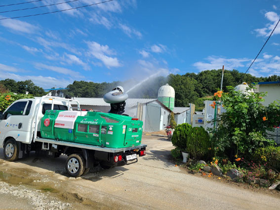 ÀÌ¿¡ ¾Æ»ê½Ã´Â Àç³Çü °¡ÃàÀü¿°º´ Â÷´Ü ¹æ¿ª¿¡ ½ÉÇ÷À» ±â¿ïÀ̱â À§ÇØ ÃÖ½ÅÇü ¼Òµ¶±â¸¦ žÀçÇÑ Ãà»ê ¼Òµ¶ Â÷·®À» ±¸¸ÅÇØ Ãà»ê³ó°¡ ¹æ¿ª Ȱµ¿ °È¿¡ ³ª¼°í ÀÖ´Ù.
