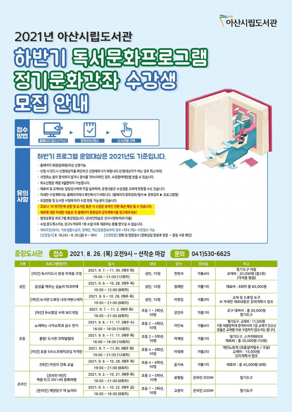 ÀÚ¼¼ÇÑ »çÇ×Àº ½Ã¸³µµ¼°ü ȨÆäÀÌÁö(ascl.asan.go.kr) ¹× ÀüÈ(041-530-6625) ¹®ÀǸ¦ ÅëÇØ È®ÀÎÇÒ ¼ö ÀÖ´Ù.