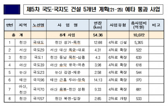 ±¹µµ¡¤±¹Áöµµ Ãæ³² 8°³ »ç¾÷ 1Á¶ ±Ô¸ð ¿¹Å¸ Åë°ú