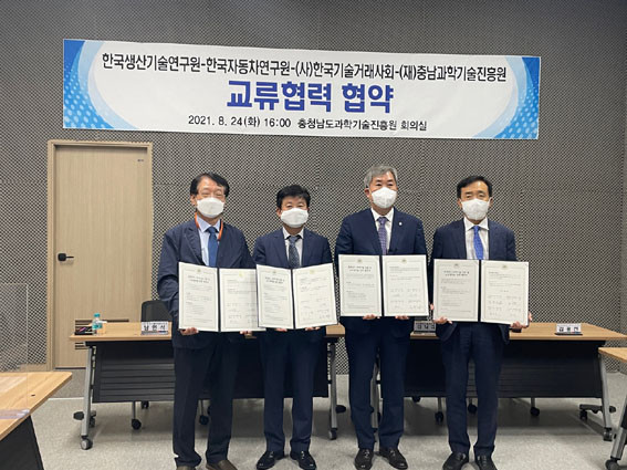 | | ¡è¡è ¡ã¿ÞÂʺÎÅÍ (»ç)Çѱ¹±â¼ú°Å·¡»çȸ(³²Àμ® ȸÀå), Çѱ¹ÀÚµ¿Â÷¿¬±¸¿ø(Çã³²¿ë ¿øÀå), Çѱ¹»ý»ê±â¼ú¿¬±¸¿ø(À̳«±Ô ¿øÀå), (Àç)Ãæ³²°úÇбâ¼úÁøÈï¿ø(±è±¤¼± ¿øÀå) <»çÁøÁ¦°ø= ÃæÃ»³²µµ°úÇбâ¼úÁøÈï¿ø> | ¨Ï ¿Â¾ç½Å¹® | | ÃæÃ»³²µµ°úÇбâ¼úÁøÈï¿ø(±è±¤¼± ¿øÀå)°ú Çѱ¹»ý»ê±â¼ú¿¬±¸¿ø(À̳«±Ô ¿øÀå), Çѱ¹ÀÚµ¿Â÷¿¬±¸¿ø(Çã³²¿ë ¿øÀå), Çѱ¹±â¼ú°Å·¡»çȸ(³²Àμ® ȸÀå) 4°³ ±â°üÀº ÃæÃ»³²µµ ¼±µµ°úÇбâ¼ú°ú »ç¾÷È¿¬°è Çù·ÂÀ» À§ÇÑ ¾÷¹«Çù¾àÀ» ü°áÇß´Ù°í 24ÀÏ ¹àÇû´Ù.