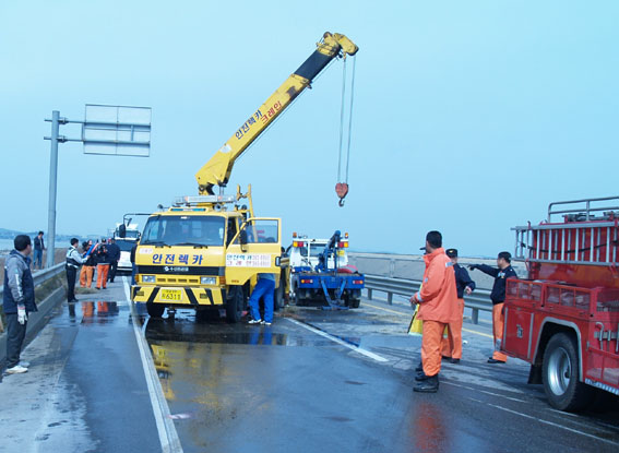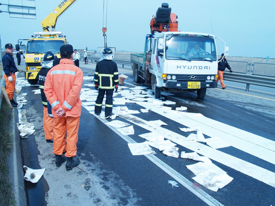 27ÀÏ ¿ÀÀü 9½Ã 15ºÐ°æ »ð±³Ãµ ¹æÁ¶Á¦ µµ·Î À§¿¡¼­ À¯Á¶Â÷·®ÀÌ Àüº¹µÇ´Â »ç°í°¡ ¹ß»ýÇß´Ù.