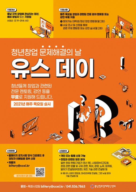 Àϸí û³ââ¾÷ ¹®Á¦ÇذáÀÇ ³¯, ¡®À¯½ºµ¥ÀÌ¡¯¸¦ ¿î¿µÇϸç û³â â¾÷±â¾÷ ¹× ¿¹ºñ â¾÷Àڵ鿡°Ô ´Ù¾çÇÑ ºÐ¾ßÀÇ Ã¢¾÷ ¸àÅ丵/ÄÁ¼³ÆÃÀ» ¸ÂÃãÇüÀ¸·Î Áö¿øÇÑ´Ù.