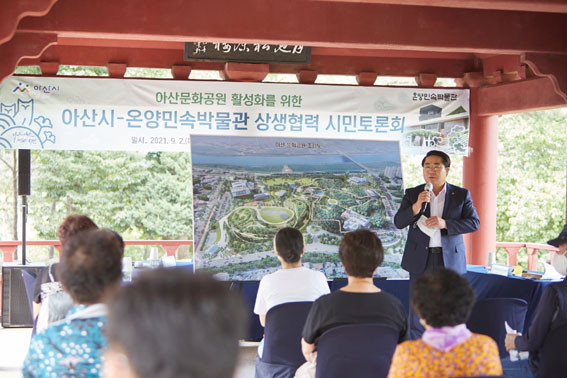 ¾Æ»ê¹®È°ø¿ø Á¶¼º ¹æÇâ°ú ¿Â¾ç¹Î¼Ó¹Ú¹°°ü ¿ÜºÎ°ø°£(Á¤¿ø)°úÀÇ µ¿¼± ¿¬°á Çʿ伺¿¡ ´ëÇÑ ¼³¸íÀ¸·Î ½ÃÀÛµÈ Åä·ÐÀº ¾Æ»ê¹®È°ø¿ø°ú ¿Â¾ç¹Î¼Ó¹Ú¹°°üÀÌ ÇÔ²² ¹ßÀüÇØ °¥ ¼ö ÀÖ´Â ¹æÇâ¿¡ ´ëÇÑ ½Ã¹ÎµéÀÇ ³ôÀº °ü½É°ú ±â´ë ±×¸®°í ¾ÖÁ¤À» È®ÀÎÇÒ ¼ö ÀÖ´Â ÀÚ¸®¿´´Ù.