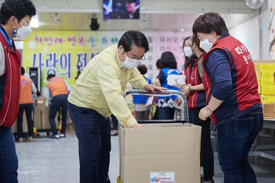 À̳¯ ¿Â¾ç¿Âõ¿ª ÇϺΰø°£ ¹«·á °æ·Î½Ä´ç¿¡¼ ÁøÇàµÈ ´ëü ±Þ½Ä ¼±¹° Æ÷Àå ºÀ»ç ÇöÀåÀ» ãÀº ¿À¼¼Çö ½ÃÀåÀº ¡°±èÁ¾±â ´ëÇ¥¸¦ ºñ·ÔÇÑ ¸¹Àº ºÐÀÇ ÈÄ¿øÀ¸·Î ¶æ±íÀº ºÀ»ç¿¡ Âü¿©ÇÒ ¼ö ÀÖ¾ú´Ù¡±¶ó¸ç ¡°Äڷγª19 Àå±âÈ·Î ´õ ¾î·Á¿öÁø ¼Ò¿Ü°èÃþ ¾î¸£½ÅµéÀ» À§ÇØ Ç³¼ºÇÑ Ãß¼®¸ÂÀÌ ¼±¹°À» ÁغñÇØ Áּż °¨»çÇÏ´Ù¡±¶ó¸ç ºÀ»çÀÚµéÀ» °Ý·ÁÇß´Ù.