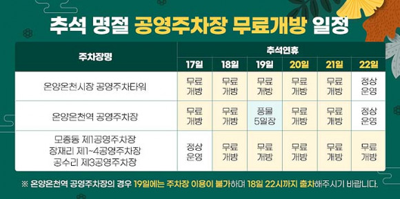 Ãß¼® ¿¬ÈÞ °ø¿µÁÖÂ÷Àå ¹«·á°³¹æ ¿î¿µ