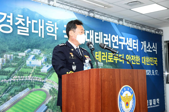 À̳¯ ±èâ·æ °æÂûûÀåÀº, ¿µ»óÀ» ÅëÇØ¼ ¡°¿À´Ã Ãâ¹üÇÏ´Â ±¹Á¦´ëÅ×·¯¿¬±¸¼¾ÅÍ´Â Å×·¯¿Í °ü·ÃÇÑ Á¾ÇÕÀûÀÌ°í ½ÉÃþÀûÀÎ ¿¬±¸¸¦ ¼öÇàÇÏ°Ô µÉ °Í¡±À̶ó¸é¼, ¡°°æÂû ´ëÅ×·¯ Á¤Ã¥À» ´õ¿í °ß°íÇÏ°Ô µÞ¹ÞħÇÏ´Â ÇÑÆí, ±Û·Î¹ú µÎ³úÁý´ÜÀ̶ó ºÒ¸®´Â, ¹Ì±¹ÀÇ¡®·£µå¿¬±¸¼Ò¡¯Ã³·³ ¼¼°èÀûÀÎ ´ëÅ×·¯ Çй®ÀÇ ¿ä¶÷À¸·Î ¼ºÀåÇÒ °ÍÀ¸·Î ±â´ëÇÑ´Ù¡±¶ó°í ÀüÇß´Ù.