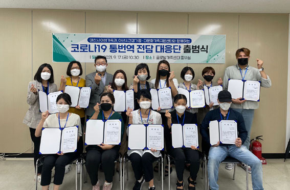 ¡®Äڷγª19 Å롤¹ø¿ª Àü´ã ´ëÀÀ´Ü¡¯Àº Áß±¹, º£Æ®³², ű¹, Çʸ®ÇÉ, įº¸µð¾Æ, ¸ù°ñ, ÀϺ», ·¯½Ã¾Æ, ¿ìÁŰ½ºÅº 9°³±¹ÀÇ ±¹ÀûÀ» °¡Áø 20¸íÀÇ °áÈ¥ÀÌÁÖ¿©¼º ¹× ¿Ü±¹ÀÎ ÁÖ¹ÎÀ¸·Î ±¸¼ºµÆÀ¸¸ç, À̹ø Ãâ¹ü½ÄÀ» ½ÃÀÛÀ¸·Î ½Ã ¿©¼º°¡Á·°ú, º¸°Ç¼Ò¿Í ¿¬°èÇØ ¿Ü±¹ÀÎ ÁֹΠ¹× ³ëµ¿Àڵ鿡°Ô Äڷγª19¿Í °ü·ÃµÈ ´Ù¾çÇÑ Å롤¹ø¿ªÀ» Áö¿øÇÏ°Ô µÈ´Ù.