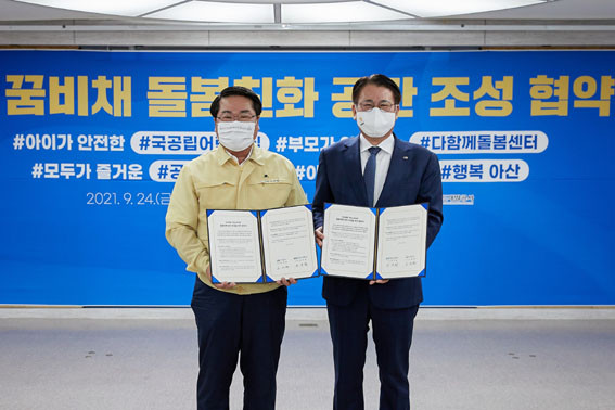 À̹ø Çù¾àÀº ¾Æ»ê ¹è¹æ ¿ùõÁö±¸¿¡ À§Ä¡ÇÑ Ãæ³²Çü ÇູÁÖÅà ¡®²Þºñ䡯ÀÇ ÀÔÁֹΰú Áö¿ªÁֹο¡°Ô ¾ÆÀÌ Å°¿ì±â ÁÁÀº º¸À°È¯°æ°ú À°¾Æ¡¤µ¹º½ ¼ºñ½º¸¦ Á¦°øÇϰíÀÚ ºÎ´ë º¹¸®½Ã¼³¿¡ ±¹¡¤°ø¸³¾î¸°ÀÌÁý, ´ÙÇÔ²²µ¹º½¼¾ÅÍ, °øµ¿À°¾Æ³ª´®Å͸¦ ¼³Ä¡ÇÏ´Â °ÍÀ» ÁÖ¿ä °ñÀÚ·Î ÇÑ´Ù.