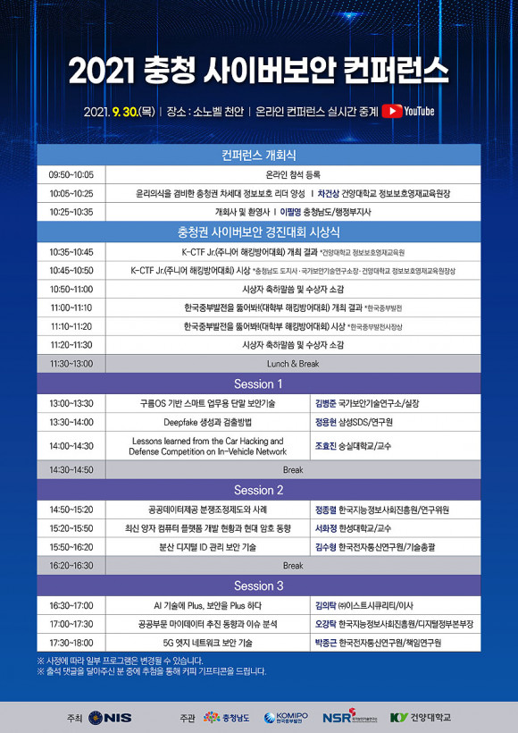 | | ¨Ï ¿Â¾ç½Å¹® | | Ãæ³²µµ´Â ¿À´Â 9¿ù 30ÀÏ ÃæÃ»±Ç¿¡¼´Â óÀ½ ¡®»çÀ̹öº¸¾È ÄÁÆÛ·±½º¡¯¸¦ ¿Â¶óÀÎÀ¸·Î °³ÃÖÇÑ´Ù°í ¹àÇû´Ù.