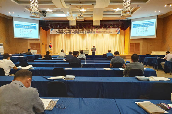 ¼ö»ê½Äǰ ¼öÃâ¾÷ü °ü°èÀÚ, ÇØ¼öºÎ, ½Ã±º °ø¹«¿ø µîÀÌ Âü¼®ÇÑ °¡¿îµ¥ ¿¬ À̹ø ¼¼¹Ì³ª´Â ¼öÃâ È®´ë Á¤Ã¥ ¼³¸íȸ, Àü¹®°¡ Ư°, ÇöÀå ÀÇ°ß ¼ö·Å µîÀÇ ¼øÀ¸·Î ÁøÇàÇß´Ù.