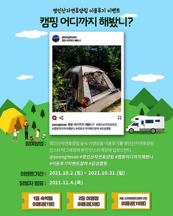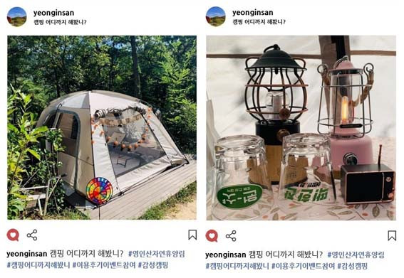 º» À̺¥Æ®´Â ¿µÀλêÀÚ¿¬È޾縲 ½£¼Ó ¾ß¿µÀåÀ» ÀÌ¿ëÇÑ ÈÄ ÀÌ¿ëÈıâ¿Í »çÁøÀ» ¿µÀλêÀÚ¿¬È޾縲 ÀνºÅ¸±×·¥(@yeonginsan) ÅÂ±×¿Í ÇÔ²² º»ÀÎÀÇ SNS °èÁ¤¿¡ °Ô½ÃÇØ Âü¿©ÇÒ ¼ö ÀÖ´Ù.