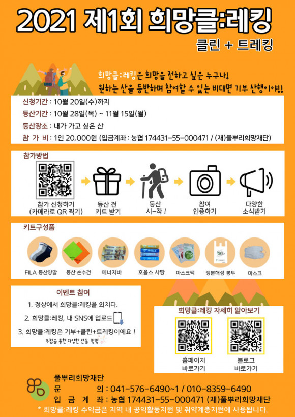 Àç´Ü¹ýÀÎ Ç®»Ñ¸®Èñ¸ÁÀç´Ü(ÀÌ»çÀå À̺´¸ð)´Â ºñ´ë¸é ±âºÎ »êÇà ¡®2021 Á¦1ȸ Èñ¸ÁŬ:·¹Å·¡¯À» °³ÃÖÇÏ°í ¿À´Â 10¿ù 20ÀϱîÁö Âü°¡ÀÚ¸¦ ¸ðÁýÇÑ´Ù.
