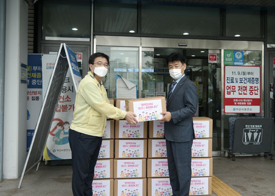 | | ¡è¡è ¡ã¹Ú¼º¼ø ÃæÃ»³²µµÀÚ¿øºÀ»ç¼¾ÅÍÀå(¿À¸¥ÂÊ)ÀÌ ±¸º»Á¶ ¾Æ»ê½Ãº¸°Ç¼ÒÀå(¿ÞÂÊ)¿¡°Ô ÀÀ¿øÅ°Æ®¸¦ Àü´ÞÇϰí ÀÖ´Ù. <»çÁøÁ¦°ø=ÃæÃ»³²µµÀÚ¿øºÀ»ç¼¾ÅÍ> | ¨Ï ¿Â¾ç½Å¹® | | ÃæÃ»³²µµÀÚ¿øºÀ»ç¼¾ÅÍ(ÀÌ»çÀå ÀÓµ¿±Ô)´Â 10¿ù 6ÀÏ ¾Æ»ê½Ãº¸°Ç¼Ò¿Í ´çÁø½Ãº¸°Ç¼Ò¸¦ ¹æ¹®ÇØ ÀÚ¿øºÀ»çÀÚµé°ú ÇÔ²² Á¦ÀÛÇÑ ¡®Äڷγª19 ±Øº¹ ÀÀ¿øÅ°Æ®¡¯ ¸¦ Àü´ÞÇß´Ù.