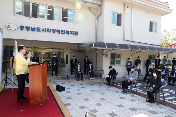 À¯°øÀÚ Ç¥Ã¢¿¡¼´Â ±×µ¿¾È ½Ã°¢Àå¾ÖÀÎÀÇ º¹ÁöÁõÁøÀ» À§ÇØ Çå½ÅÇØ ¿Â ¿ìÀ翬 ¾Æ»ê½ÃÁöȸ ºÎÁöȸÀå, ±è¿¬¿ù ¼Ãµ±ºÁöȸ ȸ¿ø, ÀÌÇö¿ì ±Ý»ê±ºÁöȸ °¨»ç µî 3¸íÀÌ µµÁö»ç»óÀ» ¹Þ¾Ò´Ù.
