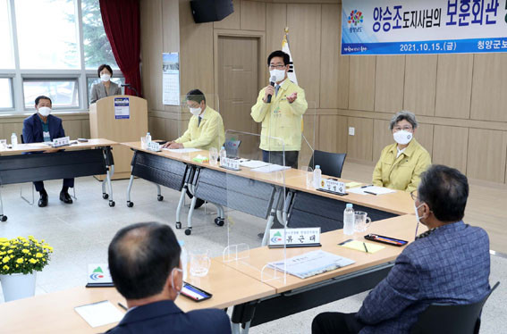 ¾ç Áö»ç´Â À̳¯ û¾ç±º ³ëÀÎȸ¿Í º¸ÈÆÈ¸°ü, ûÃá°Å¸® µîÀ» ÀÕµû¶ó ¹æ¹®ÇØ °¢ ÇöȲÀ» »ìÇǰí, ±º¹Î°úÀÇ ´ëȸ¦ ÁøÇàÇß´Ù.