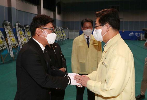 ÀÌ ÀÚ¸®¿¡¼ ¾ç Áö»ç´Â ¡°º¸ÈÆ´Üü À¯°øÀÚ ¿©·¯ºÐÀÌ ¹Ù·Î ¿À´Ã³¯ ´ëÇѹα¹À» ¸¸µç ÁÖ¿ª¡±À̶ó¸ç ¡°Ãæ³²Àº À¯°øÀÚ ¿©·¯ºÐÀÇ ¸í¿¹¸¦ µå³ôÀ̴µ¥ °¡Àå ¾Õ¼ ³ª¾Æ°¡´Â Áö¹æÁ¤ºÎ°¡ µÉ °Í¡±À̶ó°í °Á¶Çß´Ù.
