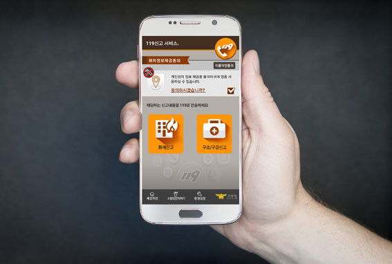 ¾Û(App) ½Å°í´Â 119½Å°í ¾ÛÀ» ´Ù¿î¹Þ¾Æ ¼³Ä¡ ÈÄ ½Å°í¼ºñ½º¸¦ ¼±ÅÃÇØ ½Å°íÇϸé, ½Å°íÀÚÀÇ GPS À§Ä¡ Á¤º¸°¡ 119»óȲ½Ç·Î Àü¼ÛµÇ¾î ½Å°íÀÚÀÇ Á¤È®ÇÑ À§Ä¡ È®ÀÎÀÌ °¡´ÉÇÏ´Ù.