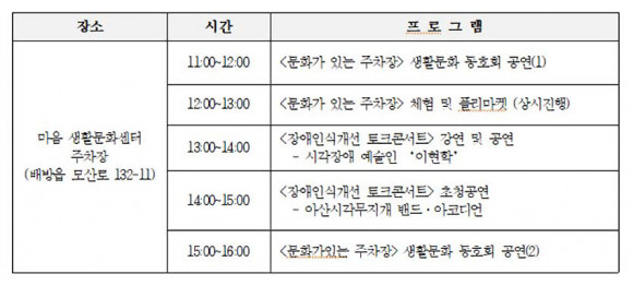 »çȸ °øÇå ÇÁ·ÎÁ§Æ® ¡®¸¶À½À¸·Î ÇÔ²² ÇÒ·¡¿ä?¡¯ »ç¾÷ÀÇ ÀÏȯÀ¸·Î ÁøÇàµÇ´Â ¡®¹®È°¡ ÀÖ´Â ÁÖÂ÷À塯Àº ¾Æ»ê½Ã »ýȰ¹®È ÁÖü °£ Çù·ÂÀ» ÅëÇØ »çȸ °øÇåÀ» ½ÇÇöÇÏ°í »ýȰ¹®È°¡ °ø»ýÇϸç Áö¼ÓÀûÀΠȰµ¿ ±â¹ÝÀ» ¸¶·ÃÇϰíÀÚ ÁøÇàµÇ´Â ÇÁ·Î±×·¥ÀÌ´Ù.
