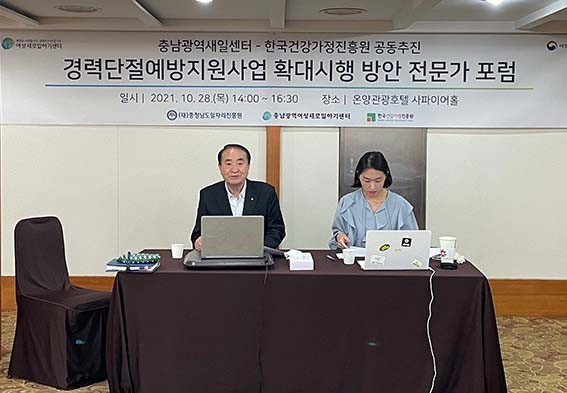 À̹ø Æ÷·³Àº Çѱ¹¿©¼ºÁ¤Ã¥¿¬±¸¿ø ¿ÀÀºÁø ¼±ÀÓ¿¬±¸À§¿øÀÇ ¡®»õÀϼ¾ÅÍ °æ·Â´ÜÀý¿¹¹æÁö¿ø»ç¾÷ ¿î¿µÀÇ ¹®Á¦Á¡°ú ÇØ°á¹æ¾È¡¯ÀÇ ÁÖÁ¦¹ßÇ¥¸¦ ½ÃÀÛÀ¸·Î °¿øµµ¿©¼º°¡Á·¿¬±¸¿ø ¼¹Ì°æ¿øÀåÀÌ ÁÂÀåÀ» ¸Ã°í ¡âÁ¤¼öÇö ÃæºÏÁö¿ªÀÎÀûÀÚ¿ø°³¹ßÀ§¿øÈ¸ ¼ö¼®¿¬±¸¿ø ¡âÀÌÁ¤¿¬ ÃæºÏ¿©¼º»õ·ÎÀÏÇϱâÁö¿øº»ºÎ ÆÀÀå ¡â ±èÁö¼ö Çѱ¹°Ç°°¡Á¤ÁøÈï¿ø ºÎÀå°ú ÁöÁ¤Åä·ÐÀ» Çß´Ù.